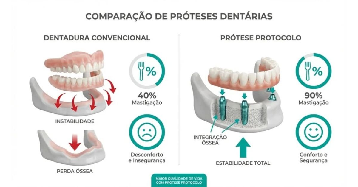 Uma prótese dentária é um dispositivo artificial que substitui um ou mais dentes perdidos, restaurando a função mastigatória, a estética do sorriso e a fonética. Ela é necessária quando há perda de dentes por cárie, doença periodontal, trauma ou outros fatores. A ausência de um dente pode causar problemas como movimentação dos dentes vizinhos, dificuldade de mastigação e perda óssea, tornando a reabilitação com prótese fundamental para a saúde bucal completa.