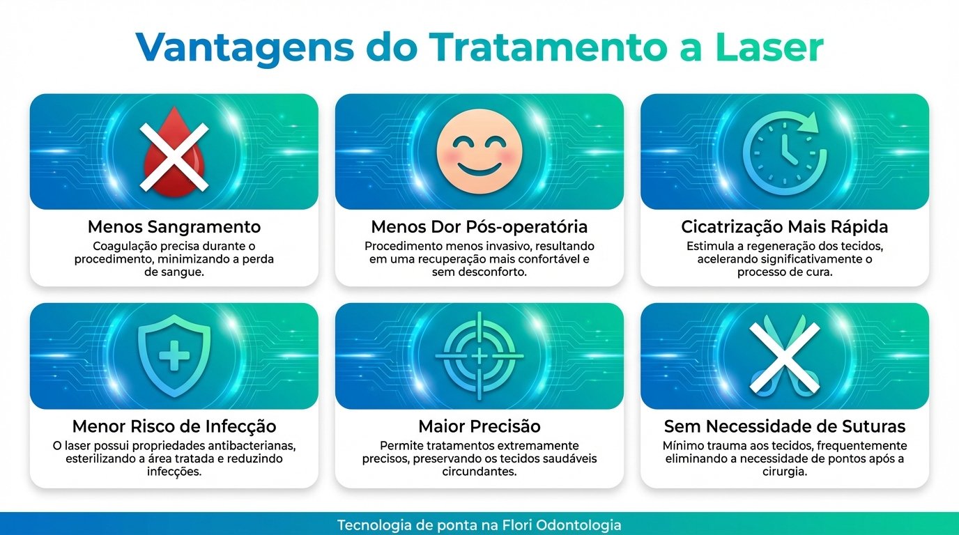 Sim! Na Flori Odontologia, realizamos biópsias com laser de alta potência. As vantagens em relação ao bisturi convencional incluem: