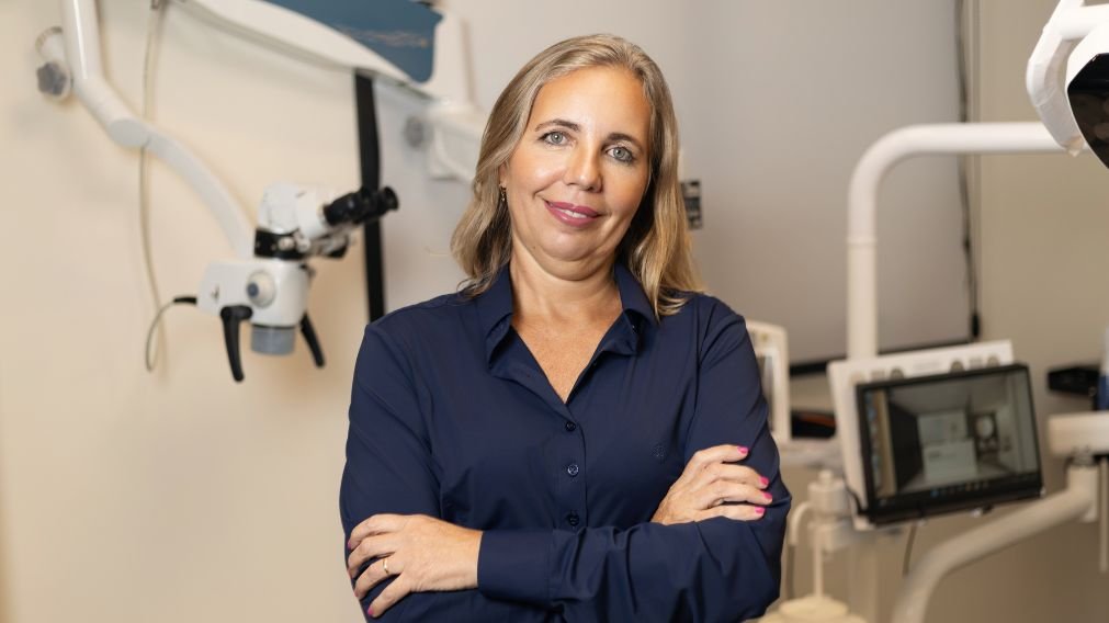 Dra. Valéria Mena, estomatologista com 30 anos de experiência, em seu consultório na Flori Odontologia em Perdizes, São Paulo
